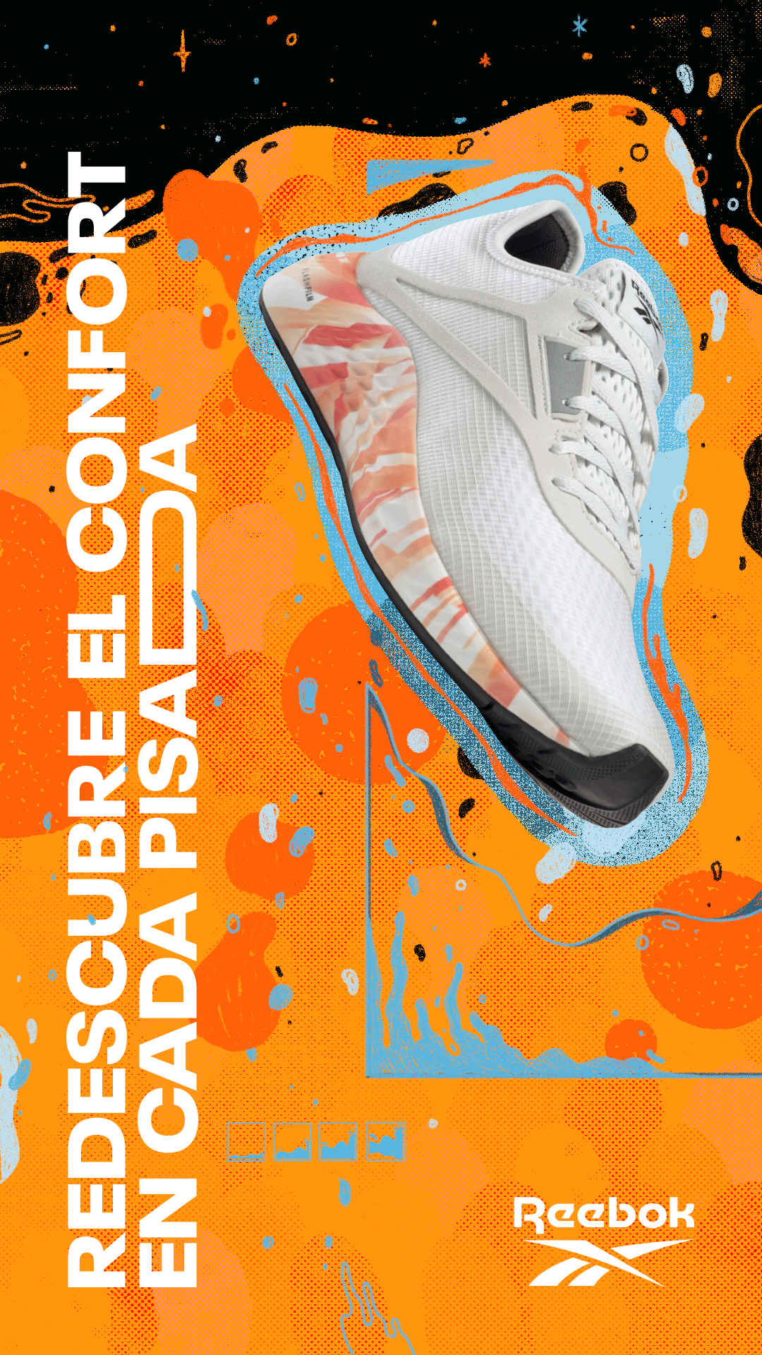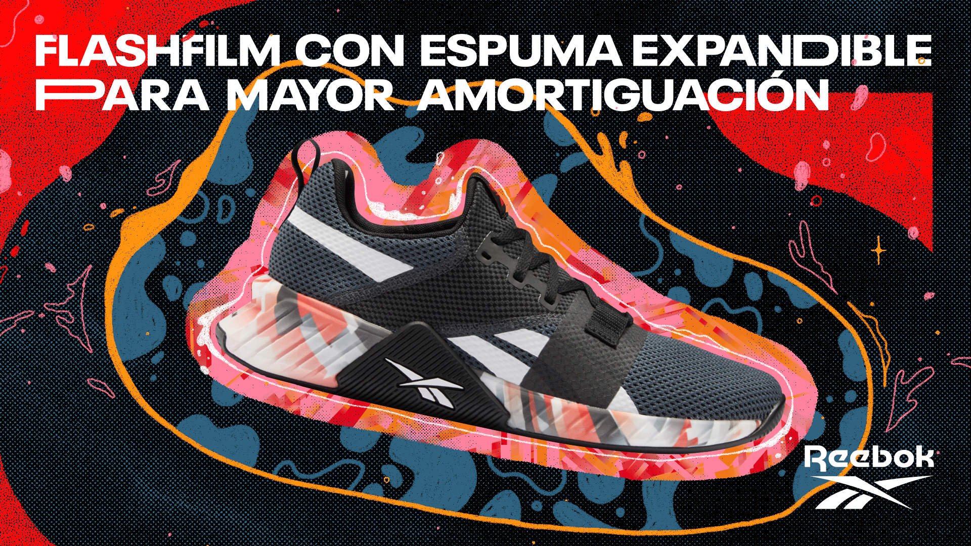 Expande tus límites de confort y movimiento. Descubre Flashfilm. Identidad para campaña 360 Reebok by NWC.